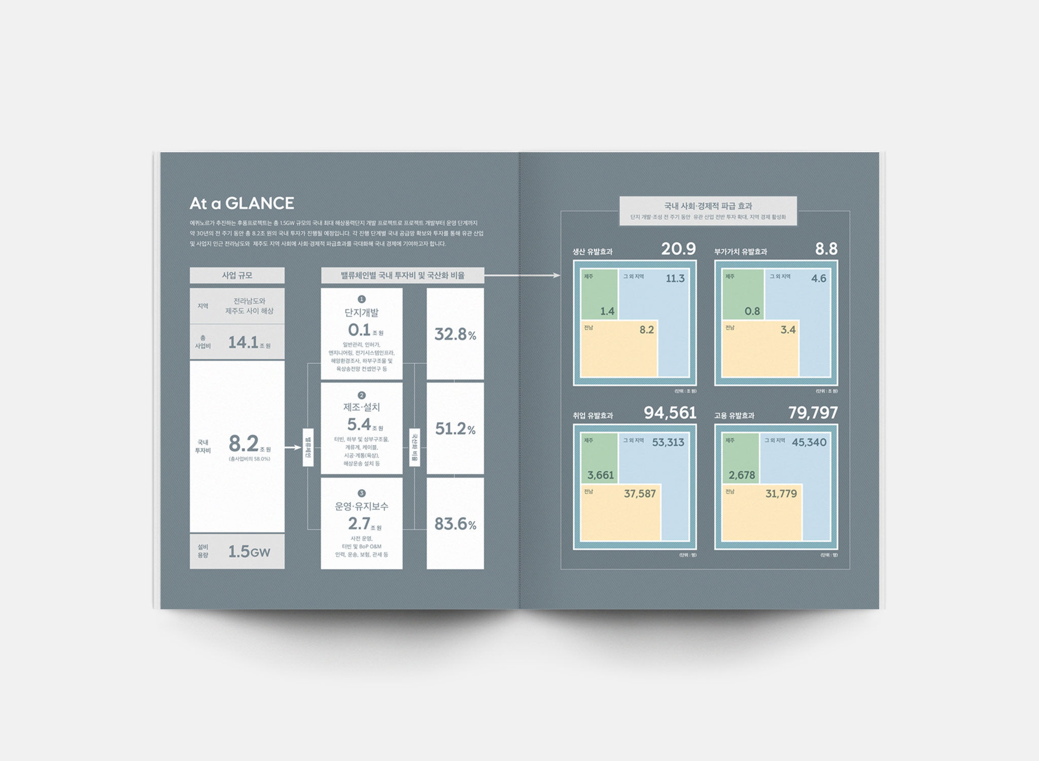 ● 사업 단계별 임팩트 수치, 통계 중심 구성, 인포그래픽 스타일 개발, 키 비주얼 요소로 활용