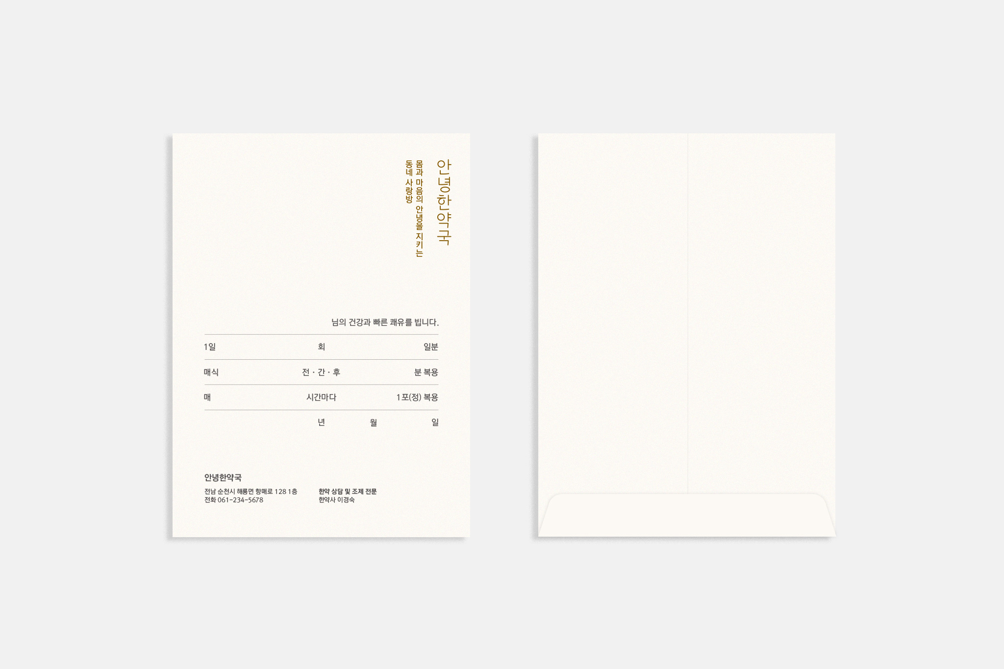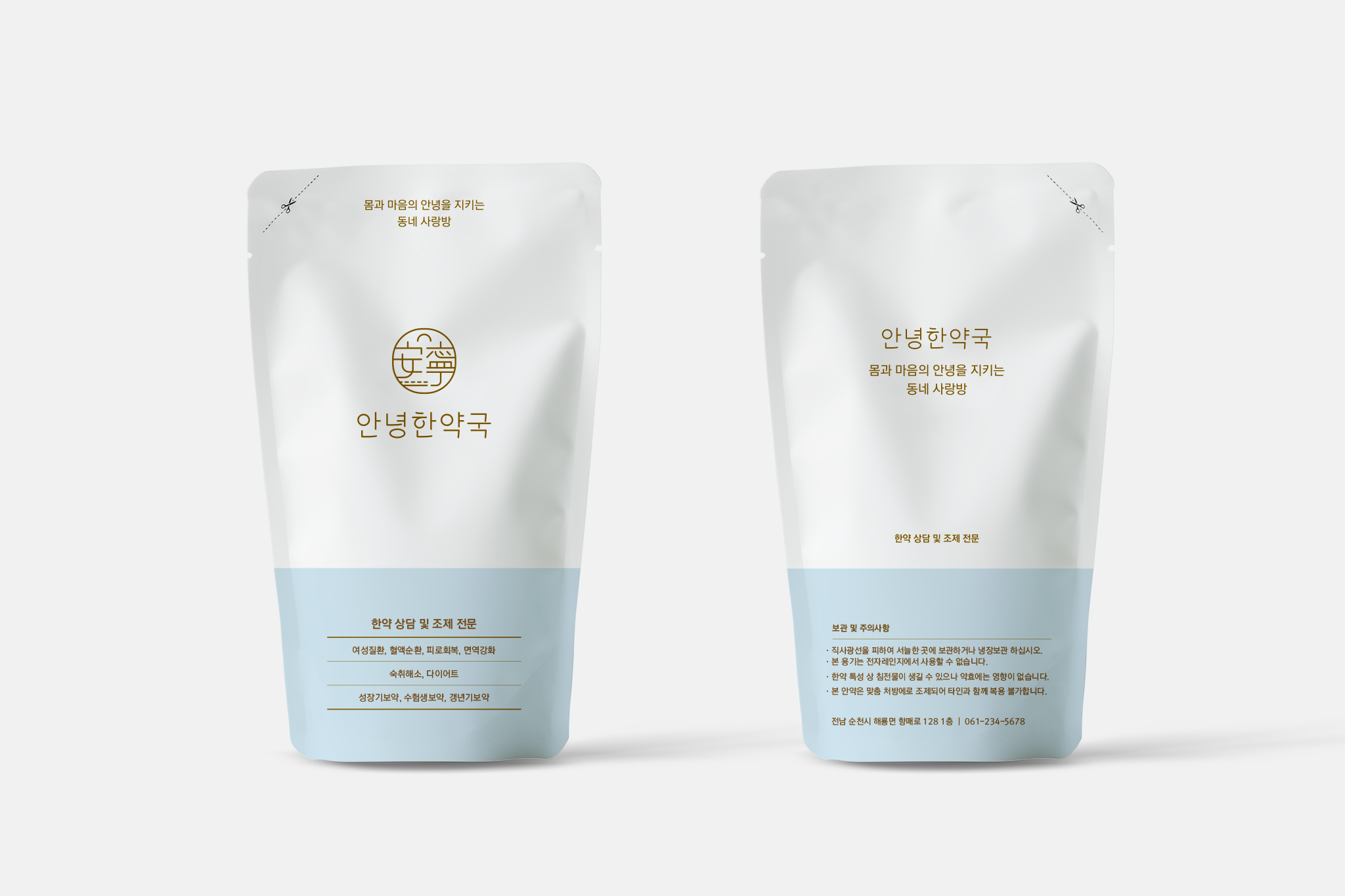 ● 동네 한약국의 다정다감한 이미지와 한국적 이미지를 결합하여 심플하고 아기자기한 디자인으로 구성