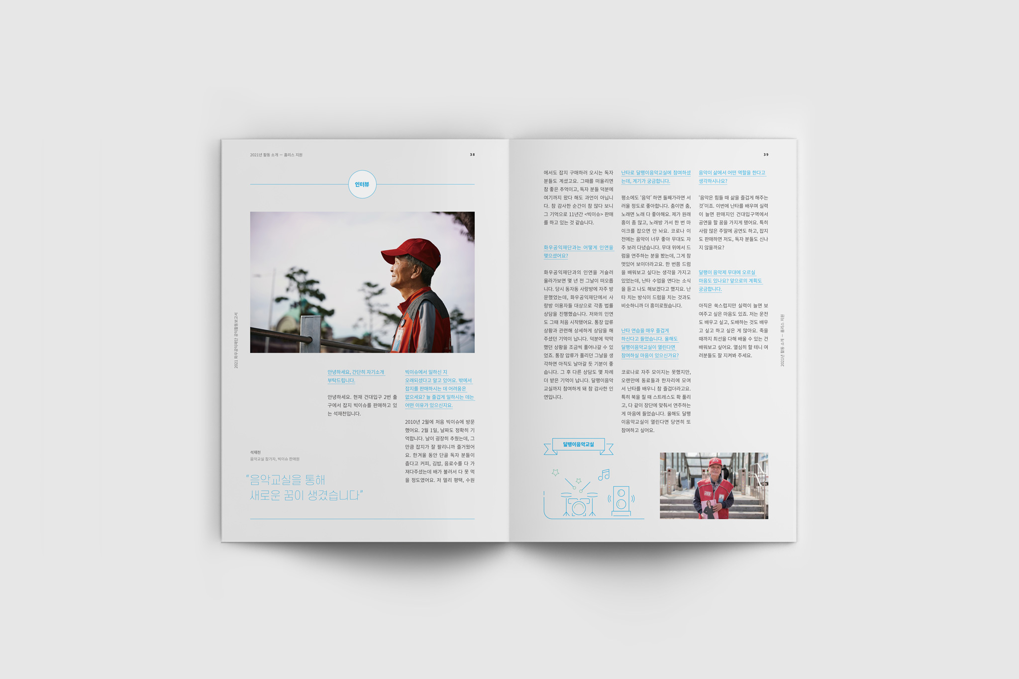 ● 2021년 보고서로 ‘새로운 씨앗이 움트다’라는 주제로 해당 연도에 그간의 활동을 바탕으로 새로운 활동들이 꽃피웠음을 시각화